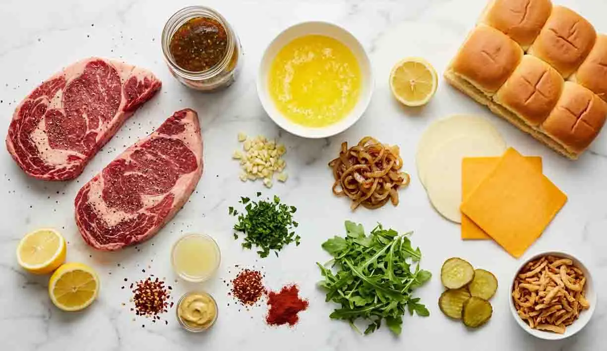Let’s break down everything you’ll need to create the ultimate batch of garlic butter steak sliders.
