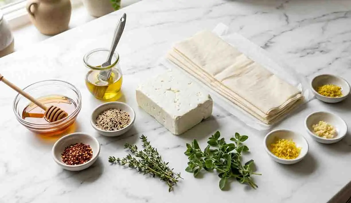 Ingredients for the Best Oven-Fried Feta Rolls with Chili Honey